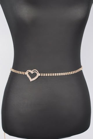 Rhinestone Heart Chain Belt - Gold / One Size Fits All