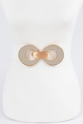 Product Description: Make a statement with the Rhinestone Two Buckle Elastic Belt—a glamorous twist on a classic silhouette. Designed with dual rhinestone buckles and a wide elastic band, it provides structure, shine, and a flattering fit. This accessory effortlessly adds sophistication and sparkle, making it perfect for elevating both dressy and casual ensembles.