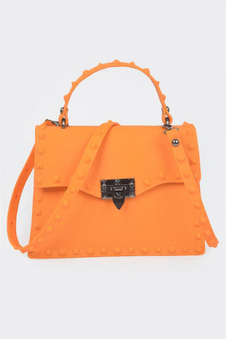 Product Description: Make a bold entrance with the Monotone Studded Clutch. Crafted from durable polyurethane and detailed with mixed metal studs, this structured clutch brings edge and elegance together. Its minimalist silhouette is elevated with rivet detailing for a fashion-forward look. Ideal for nights out or edgy daytime wear, this clutch adds confident flair to any outfit. Carry it by hand or tuck it under your arm for easy style.