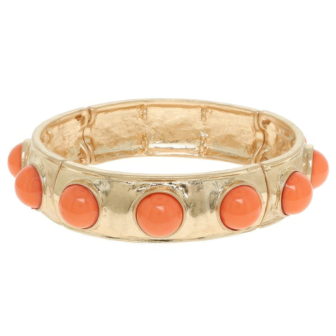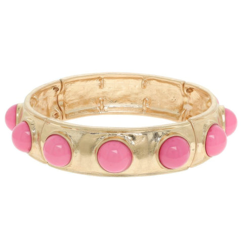 Product Description: Sleek and minimal with a touch of classic charm, the Bezel Set Cabochon Stretch Bangle is a go-to accessory for modern styling. Featuring bezel-set faux cabochons in a polished gold-tone finish, this bracelet offers a comfortable stretch fit that’s perfect for stacking or wearing solo. Its slim profile and gleaming details deliver everyday elegance with a flexible build made for ease and wearability. An ideal choice for both casual and dressed-up occasions.