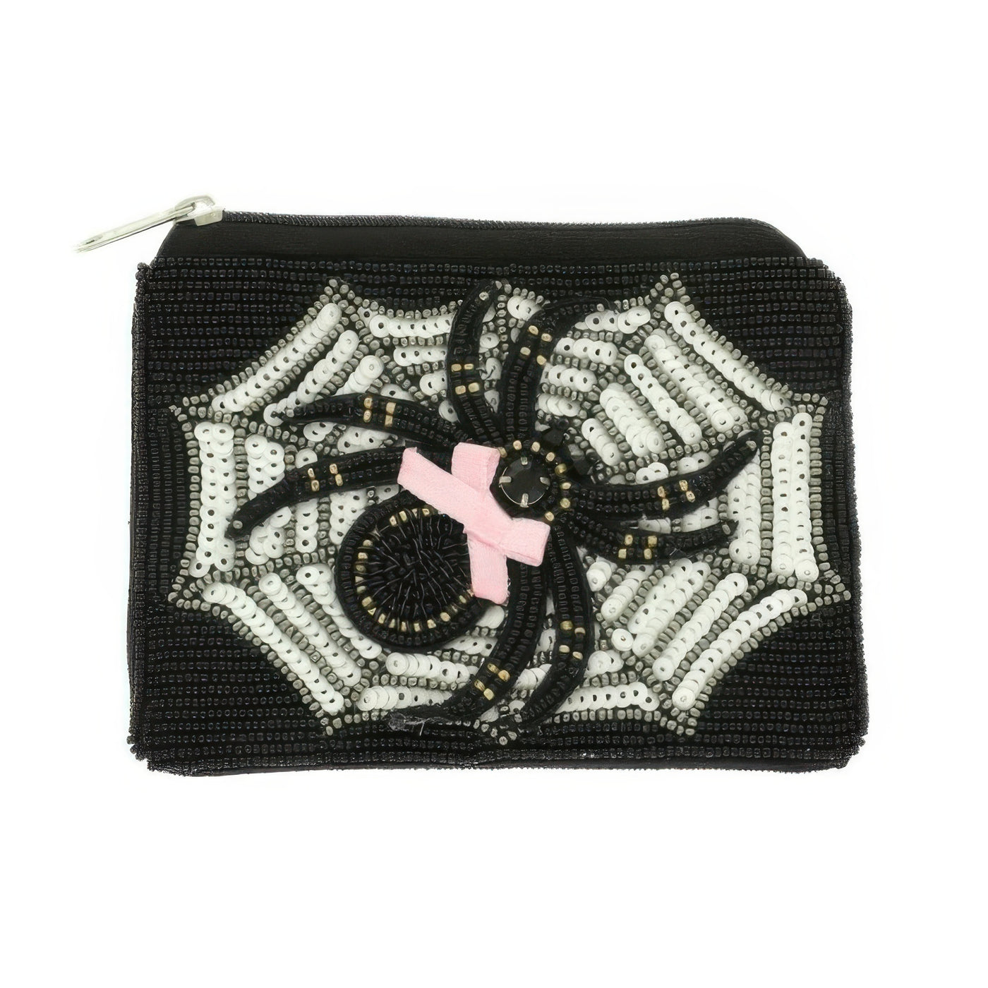 Product Description: Bring playful spooky style to your accessories with this Halloween crystal seed beaded coin bag. Featuring a charming black spider design accented with a pink bow, this festive pouch adds a touch of whimsy to your seasonal wardrobe. The compact size is perfect for holding coins, cards, or small essentials while on the go. A secure zipper closure keeps belongings safe, and its lightweight construction makes it easy to carry anywhere. Whether for trick-or-treat night, a themed party, or as a thoughtful seasonal gift, this bag is a fun and functional Halloween accessory.