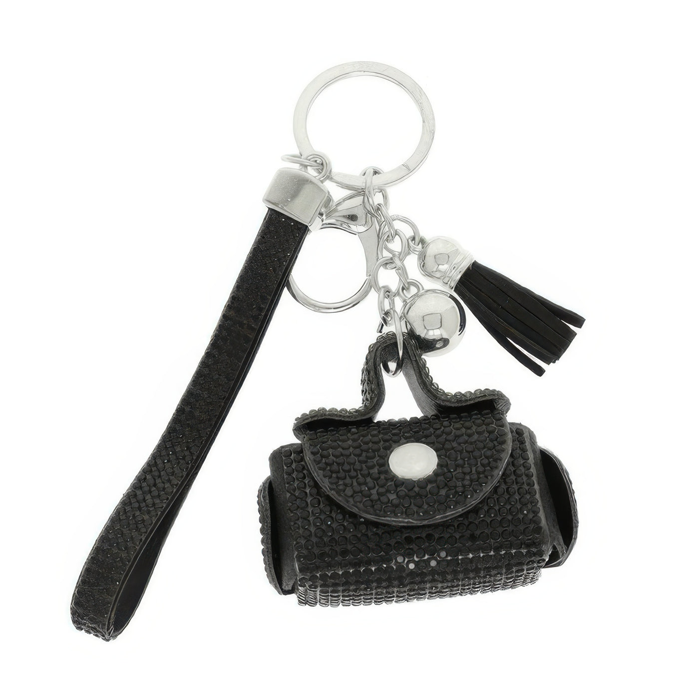 Product Description: Keep your tech stylishly close with this rhinestone-studded mini leather clutch-style case, complete with a wristlet keychain. Designed to hold earbuds or AirPods, this compact piece combines fashion and function in one glam package. Its sparkly finish and snap closure add eye-catching detail, while the secure wrist strap ensures easy, on-the-go access. A perfect gift for teens, tech lovers, or anyone who enjoys organizing with flair.