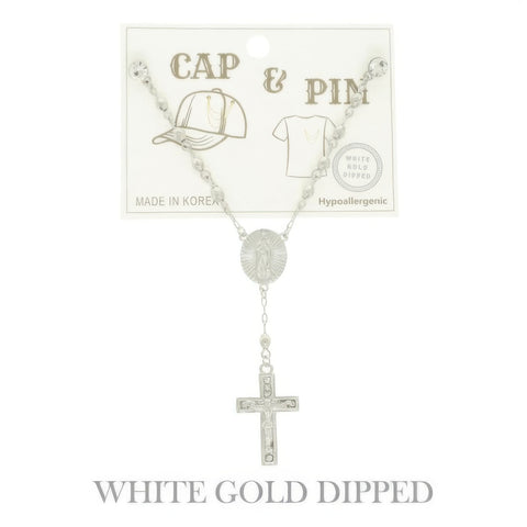 Product Description: This shorter-length charm hat chain brings together spiritual symbolism and subtle elegance. Featuring a crystal-adorned Virgin Mary and crucifix, the medallion details are thoughtfully styled on a polished gold-plated chain. Whether in yellow or white gold finish, this lightweight piece adds meaning and shine to hats, collars, or lapels. It’s a beautiful way to honor faith, perfect for group wear, gifting, or religious gatherings.