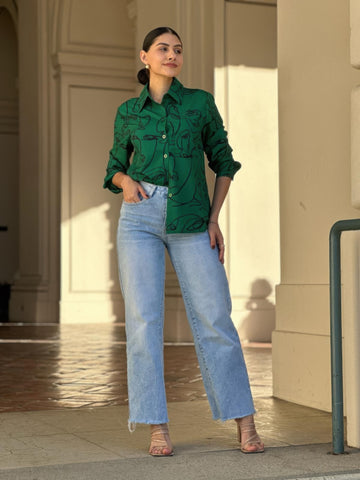 Face Print Long Sleeve Button Down Blouse