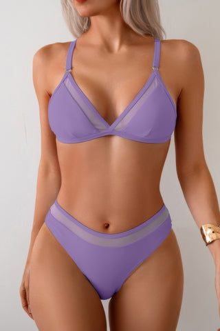 Two Pieces Lace Trim Solid High Cut Bikini Sale