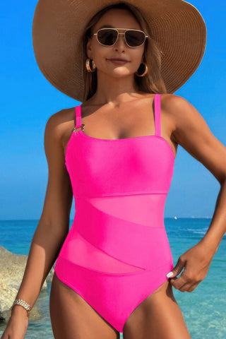 One Piece Color Block Lace High Cut Swimsuit Sale