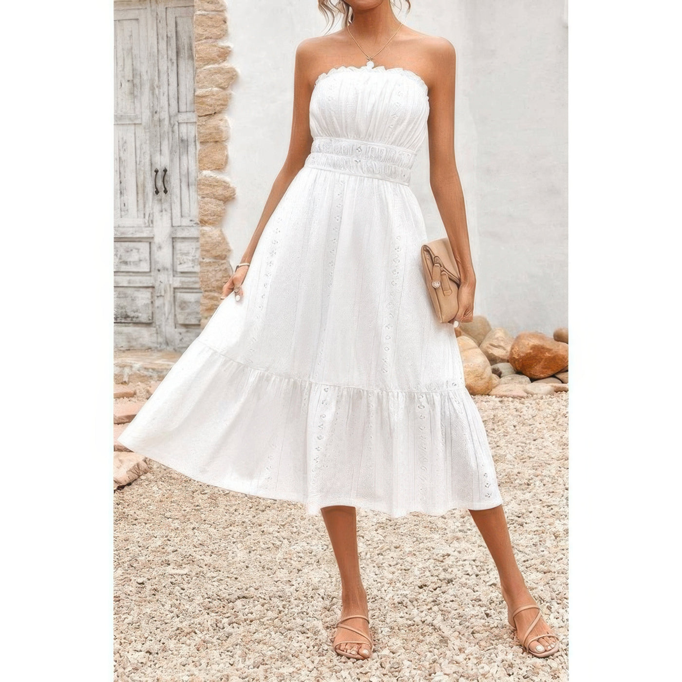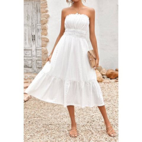 Solid Off Shoulder Elasit Waist Ruffle Dress Sale