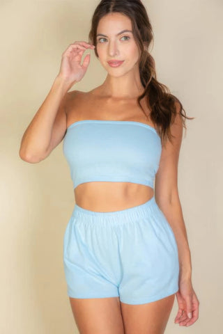 Simple Solid Color Tube Top And Shorts Two Piece Set - S