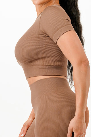 Ribbed Seamless T-shirt And Leggings Set Sale