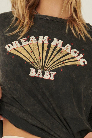 Perfect for casual outings, weekend adventures, or whenever you want to infuse a bit of whimsy into your style, the Mineral Washed Dream Magic Baby Top is a versatile choice.
