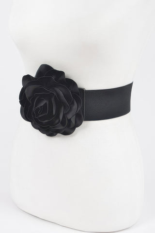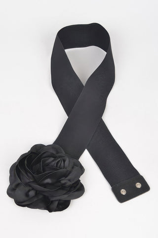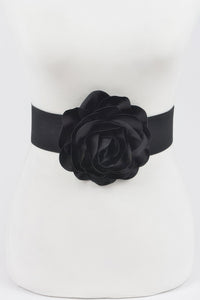 Delicate Beautiful Flower Plus Size Elastic Belt - Black / One Size Fits All