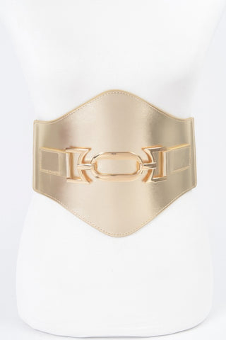 Faux Leather Wide Elastic Plus Size Belt - Black Gold / One Size Fits All