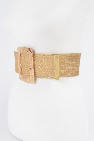 Rectangle Metal Buckle Stretch Plussize Straw Belt