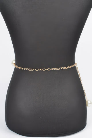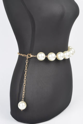 Product Description: The Oversized Pearl Chain Belt adds a luxe accent to your waistline. Crafted with oversized pearl links and gleaming metal connectors, it delivers maximum impact with minimal effort. The extended length makes it great for styling over dresses, skirts, or high-waisted pants. Wear it draped or cinched for a personalized touch. A glam finishing piece for elevated looks.