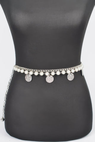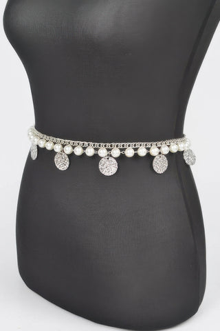 Product Description: Add elegance to your waistline with the Faux Pearl Round Metal Chain Belt. Featuring delicate pearl accents linked by polished metal, this belt is a perfect accessory for dresses, jumpsuits, or high-waisted bottoms. Lightweight and adjustable, it brings a feminine finish to any outfit.