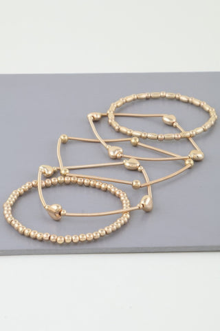 Product Description: Wrap your wrist in romance with the Multi Heart Coil Beaded Bracelet—a graceful fusion of charm and shine. This coil-style bracelet features a stunning mix of smooth and textured gold-tone beads, accented with polished heart-shaped details for a playful yet elegant finish. Designed to effortlessly coil around your wrist, it offers an easy fit and eye-catching appeal that’s perfect for both daywear and evening glam.