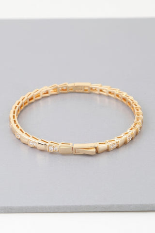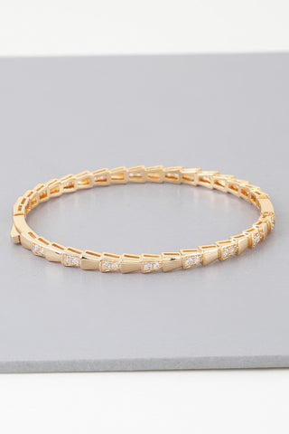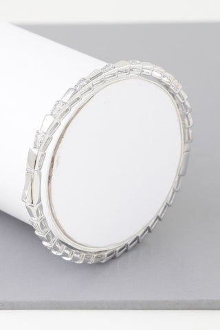 Product Description: Wrap your wrist in bold elegance with the Bejeweled Snake Scale Bracelet, a striking piece that radiates luxury and sophistication. Designed with an intricate snake scale pattern, this bracelet delivers texture, shine, and a captivating edge. Measuring approximately 2.2 by 2.4 inches, it offers a structured fit that feels both substantial and refined. The shimmering embellishments catch the light beautifully, making it a standout accessory for both everyday glam and special occasions. Whether worn solo or layered, this bracelet adds a confident, statement-making touch to any look.