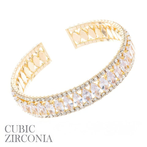 Product Description: Add timeless sparkle to your wrist with the Marquise Cut Cubic Zirconia Cuff Bracelet. Designed with shimmering marquise-cut stones and finished in a sleek silhouette, this cuff delivers both modern elegance and classic appeal. The adjustable fit ensures comfort, while the slender width makes it easy to layer or wear solo for a refined statement. Perfect for special events or adding polish to your daily wardrobe.