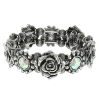 Western Rose Themed Stretch Bracelet - Aqua blue