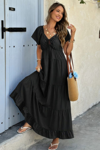 Product Description:Enjoy effortless style with the Square Neck Cross Knot Pockets Ruffle Hem Dress. This piece is designed to be a versatile and chic addition to your wardrobe. Crafted from 95% polyester 5% elastane, it offers both comfort and a flattering silhouette, perfect for casual/daily/outdoor/vacation/school/going out..
