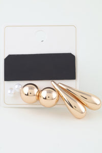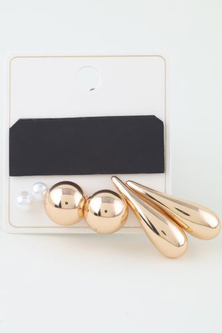 Multi Teardrop N Pearl Earrings Set - Gold cream