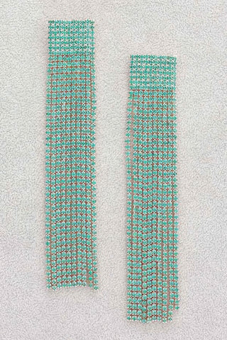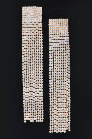 Product Description: Drape yourself in elegance with the Rhinestone Curtain Drop Earrings. These long, flowing earrings feature strands of rhinestones that shimmer and sway with every movement. The cascading design delivers a dramatic effect that’s perfect for formal events and elevated occasions.