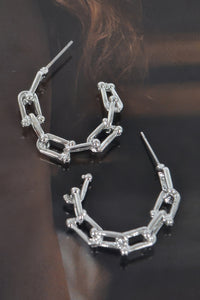 Product Description: Chic and modern, the Chain Hoop Earrings blend the classic hoop silhouette with a trendy chain link twist. Their polished design makes them perfect for layering or wearing solo. A must-have staple for fashion-forward accessory lovers.