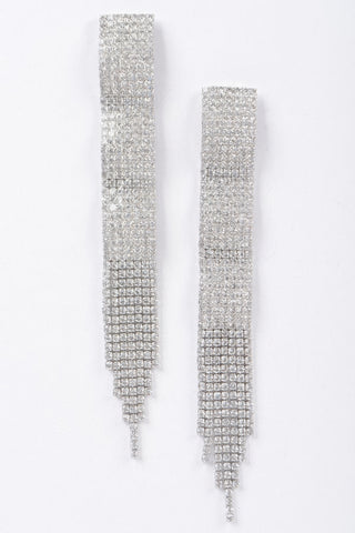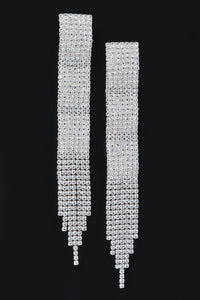 Product Description: Drape yourself in sparkle with the Rhinestone Fringe Earrings—designed to dazzle from every angle. These statement earrings feature cascading rhinestone strands that catch and reflect the light, adding graceful movement and undeniable glamour. With their elongated 4.75" length and sleek 0.65" width, they’re perfect for making an entrance at evening events, parties, or special occasions. Lightweight yet eye-catching, these earrings bring refined drama to any outfit.
