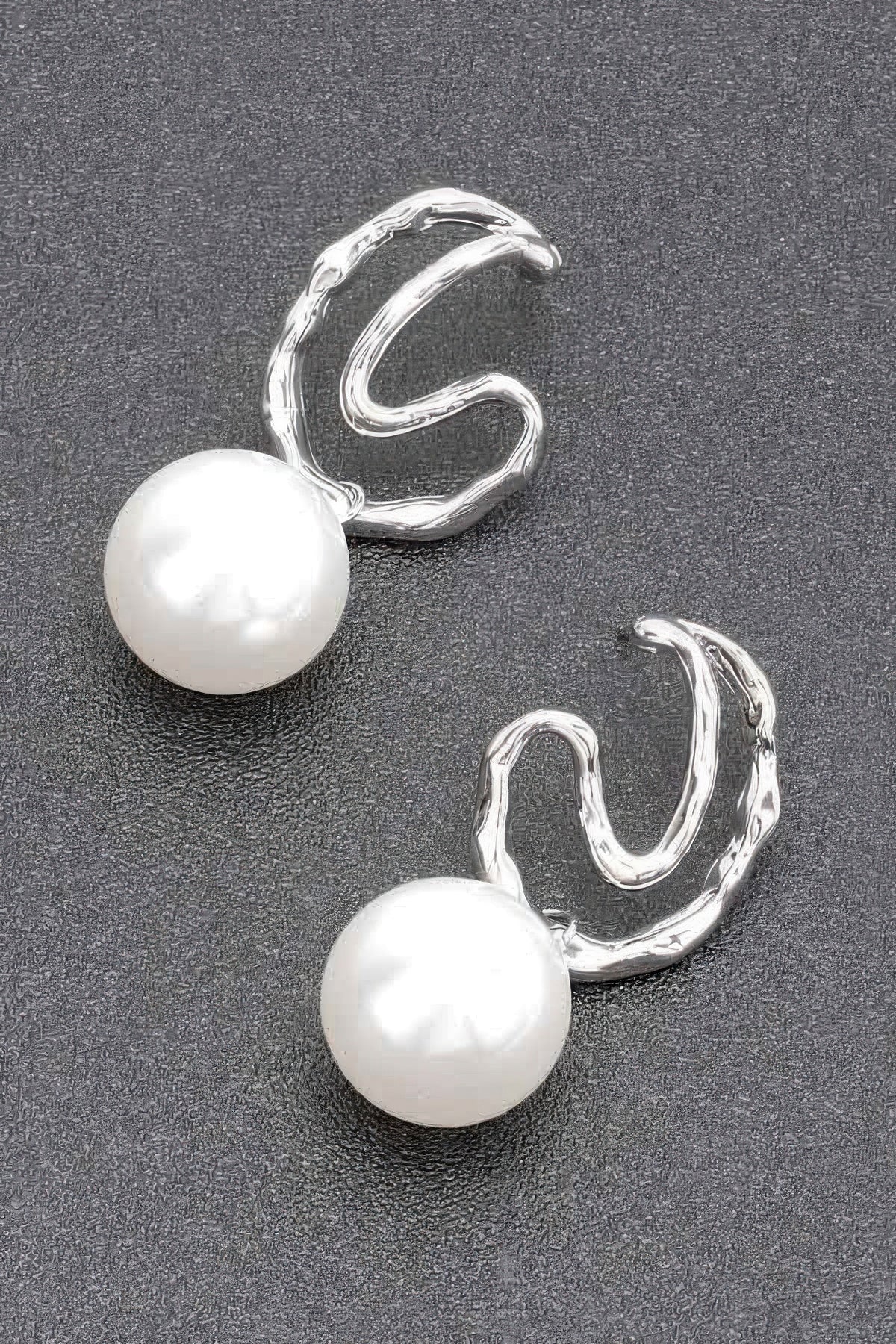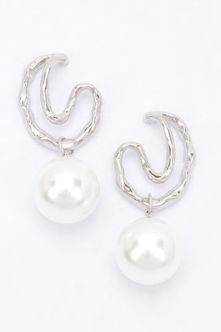 Faux Pearl Metal Earring - Silver