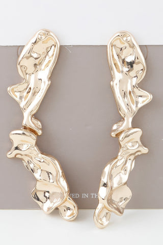 Shiny Abstract Ripple Earrings - Gold