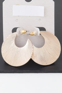 Product Description: Make waves with the Golden Wave Hoops—an elevated take on statement earrings. Featuring a flared clam shell shape, these hoops blend bold design with elegant curves. The radiant gold finish creates striking contrast and ensures these earrings catch the light—and attention—wherever you go.