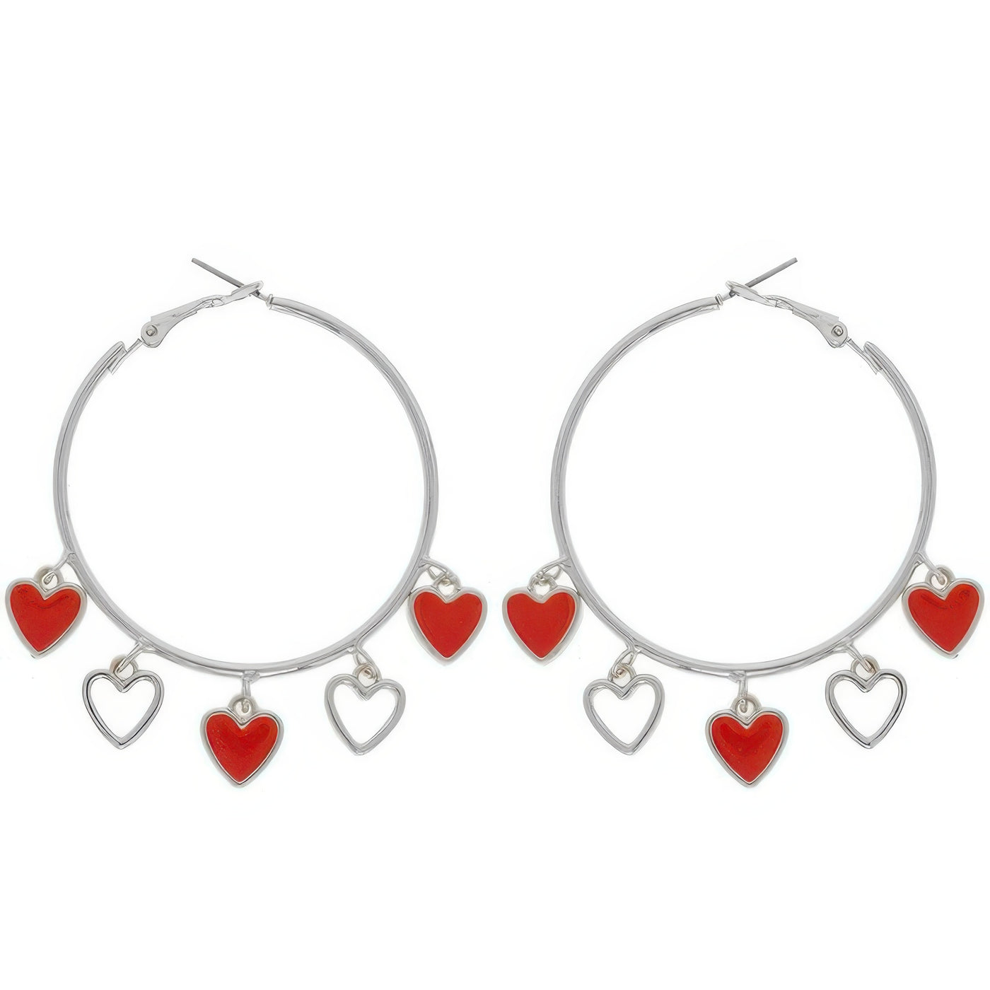 Red Acetate Resin Heart Charm Hoop Earrings Sale