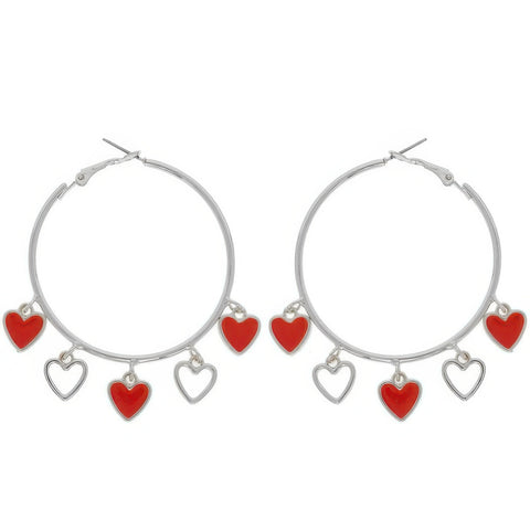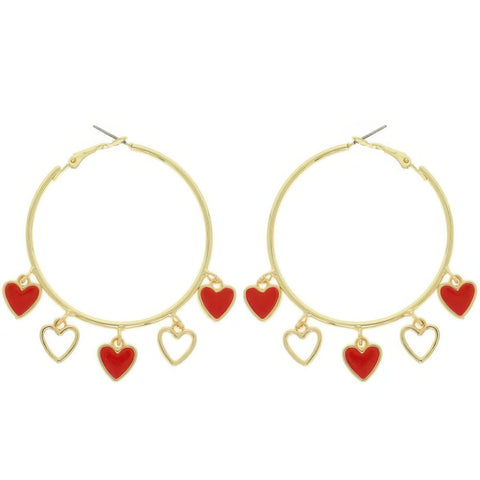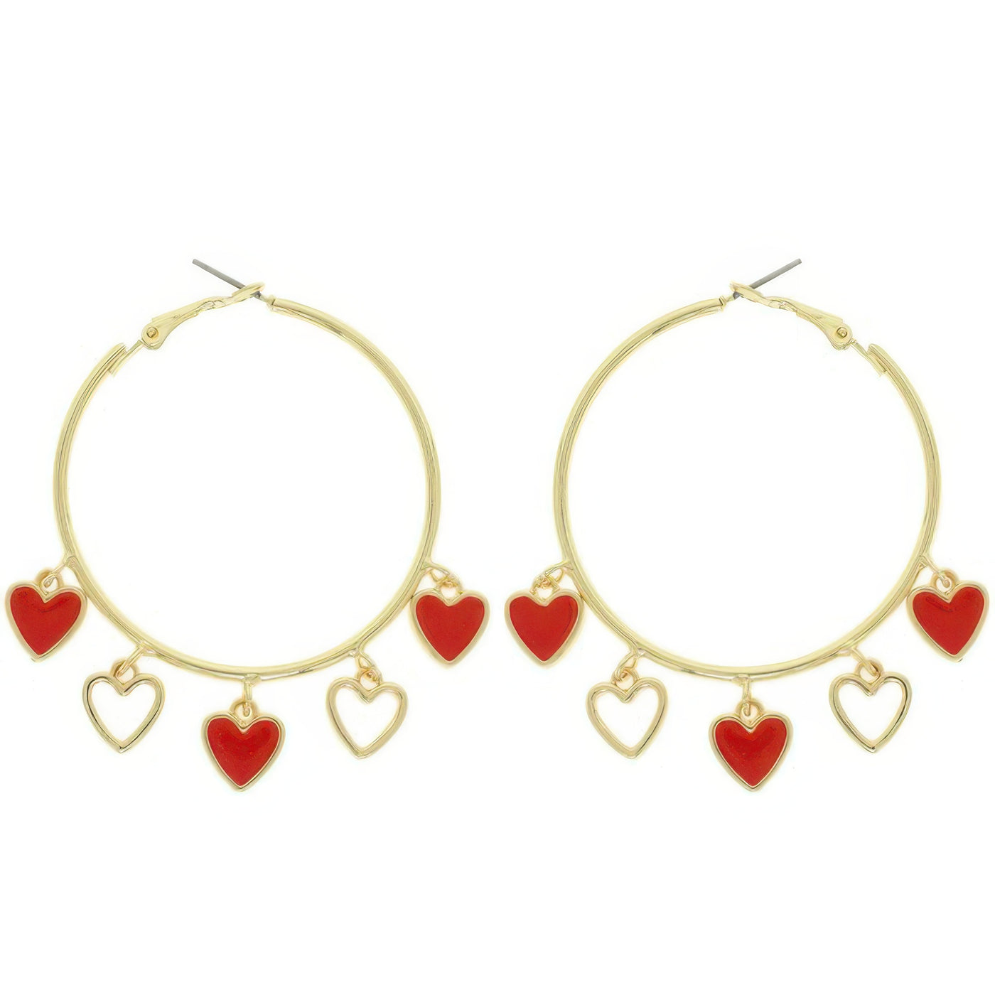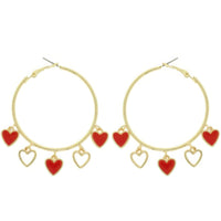 Red Acetate Resin Heart Charm Hoop Earrings - Red.Gdred