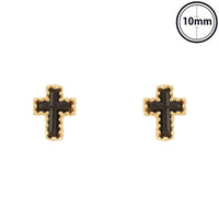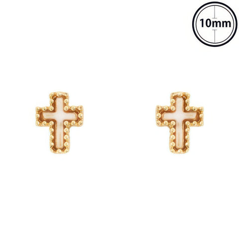Latin cross post earrings with pearlescent enamel inlay