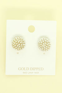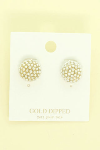 Product Description: Elevate your elegance with the Gold Plated Pearl Pave Sphere Ball Earrings. These glamorous earrings feature a pave design encrusted with white pearls, set in radiant yellow gold plating for a timeless and luxurious look. Perfect for formal events or special evenings out, their delicate size and lightweight feel ensure graceful wear. A refined choice for bridal events, holiday parties, or a sophisticated gift.