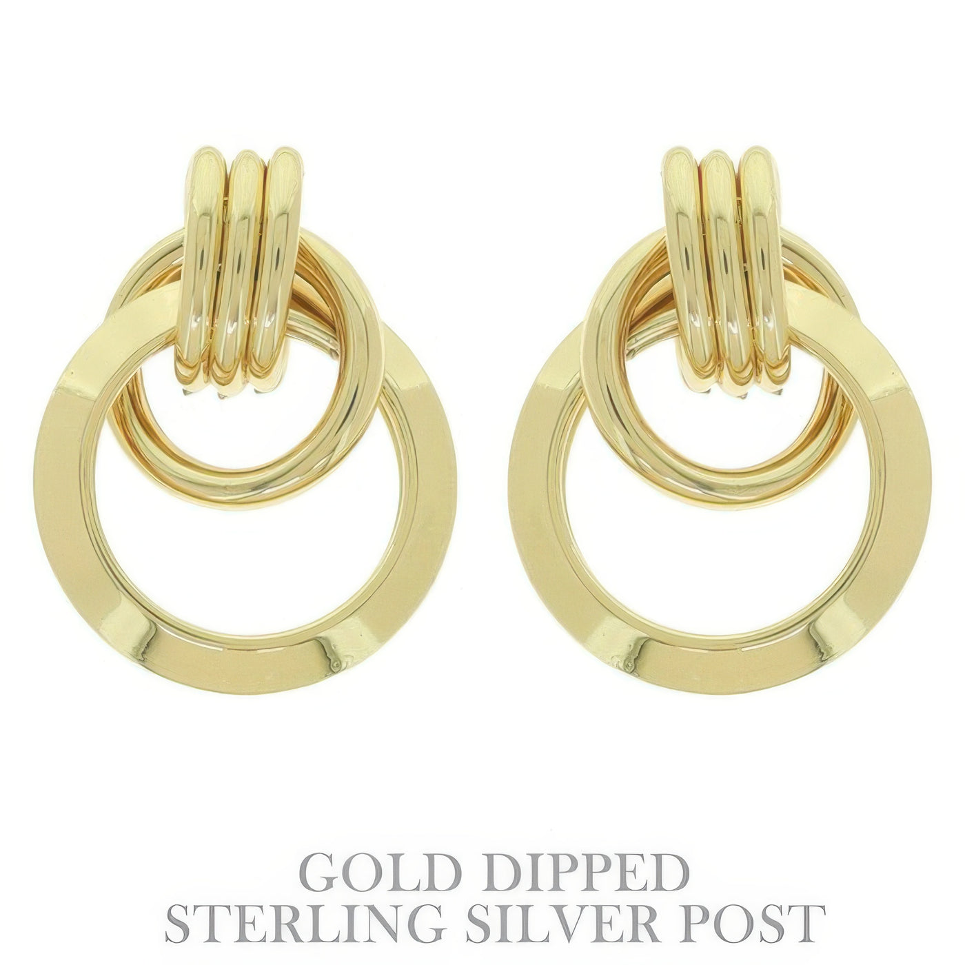 Product Description: Polished and striking, these stacked doorknocker earrings create a bold geometric statement. Available in yellow or white gold plating, they feature a smooth open-disc design with a glossy finish. Crafted with sterling silver posts, they balance everyday wearability with an elevated look. Ideal for dinner dates, gallery openings, or special occasions, these earrings are a must-have for modern jewelry lovers.
