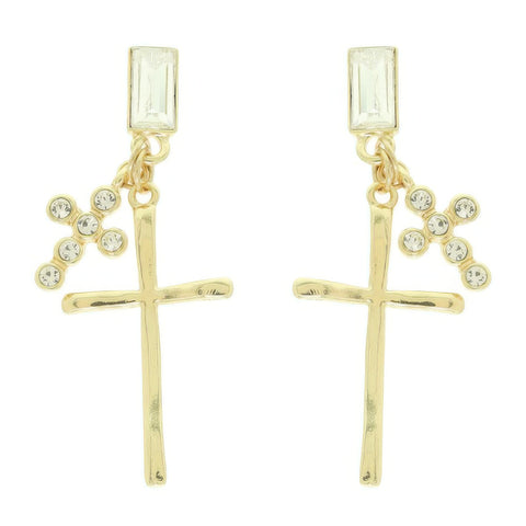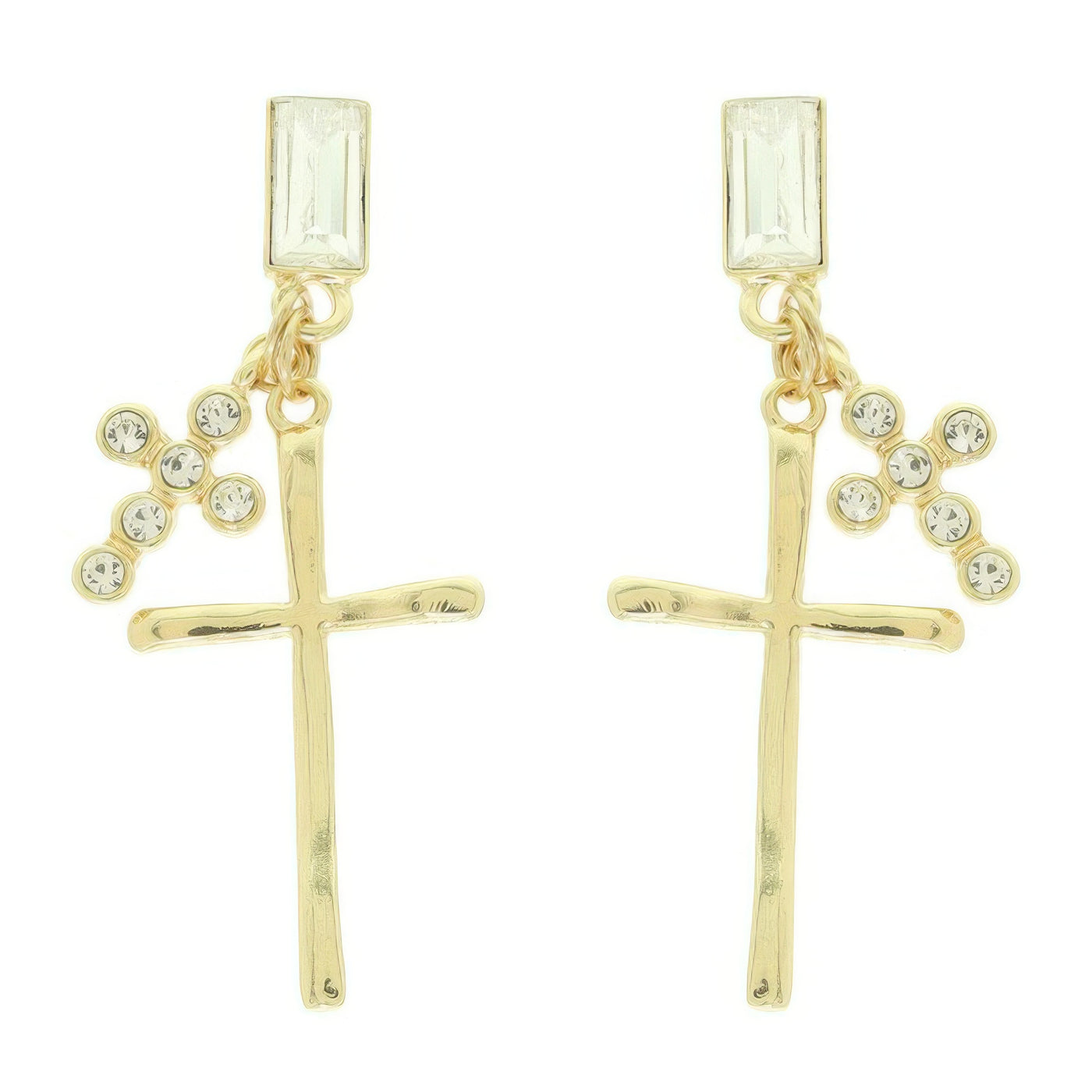 Product Description: These rhinestone cross charm earrings pair modern chic with spiritual elegance. Crafted with baguette-cut crystals, they catch the light beautifully while maintaining a sleek, angular silhouette. Lightweight and polished, they transition easily from worship services to evening events. A refined accessory that combines faith and fashion in one versatile design.