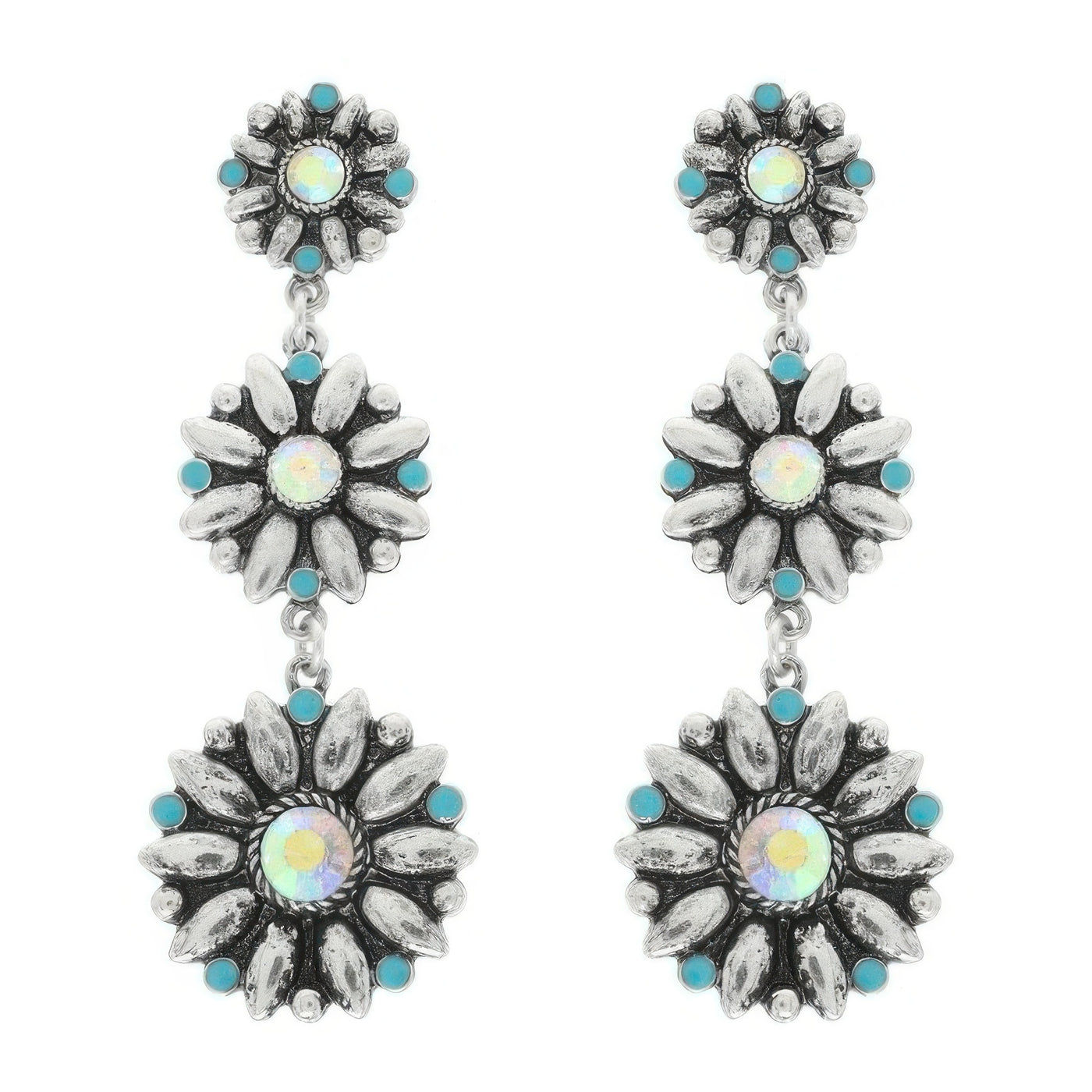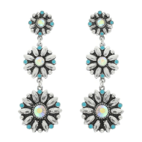 Turquoise crystal floral concho dangle earrings