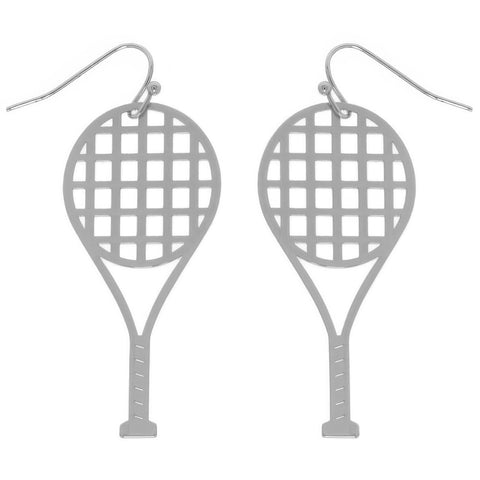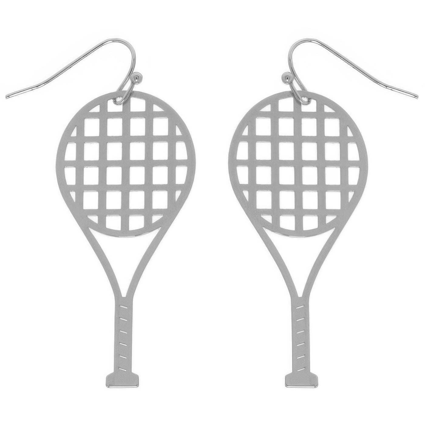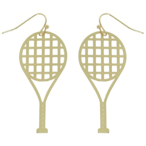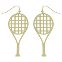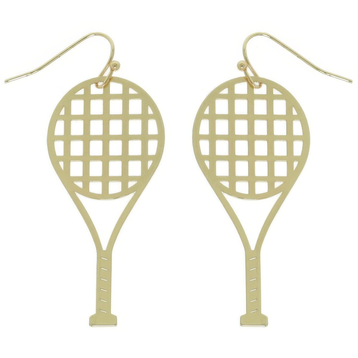 Product Description: Bring a sporty edge to your accessories with these tennis racket dangle earrings, perfect for game day or off-court style. Crafted in sleek gold or silver-tone metal, they feature an openwork design that’s lightweight yet striking. The slim silhouette makes them easy to pair with casual or athletic outfits. Whether you're a tennis player, coach, or fan, these earrings serve up court-ready charm. A thoughtful gift for sporty friends or anyone who loves fitness-inspired fashion.