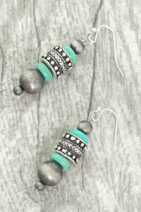 Western Jeweled Beaded Dangle Earrings - Tuquoise