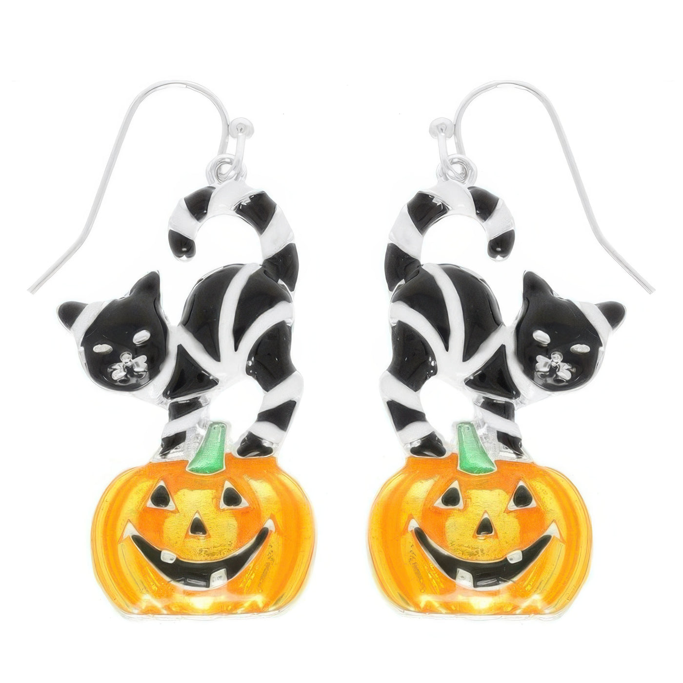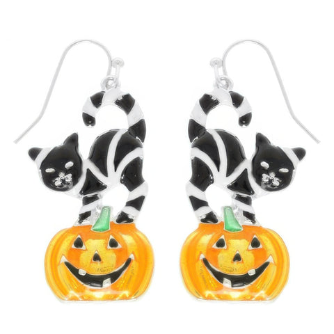 Halloween Black Cat On Pumpkin Earrings - Multicolor