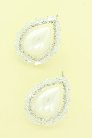 Cz Bezeled Drop-shaped Pearl Earrings - WhiteSilver.Crwhs