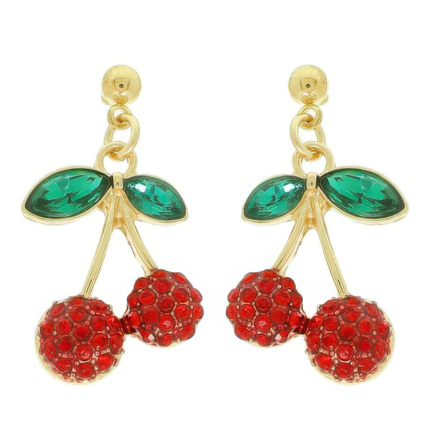 Product Description: Bright and flirty, these rhinestone pave cherry post earrings bring sparkle and playful style to your look. Their lightweight design and vivid red cherries make them a standout accessory for birthdays, vacations, or everyday outfits. Glossy and polished, they add a touch of whimsy while still being chic and versatile.