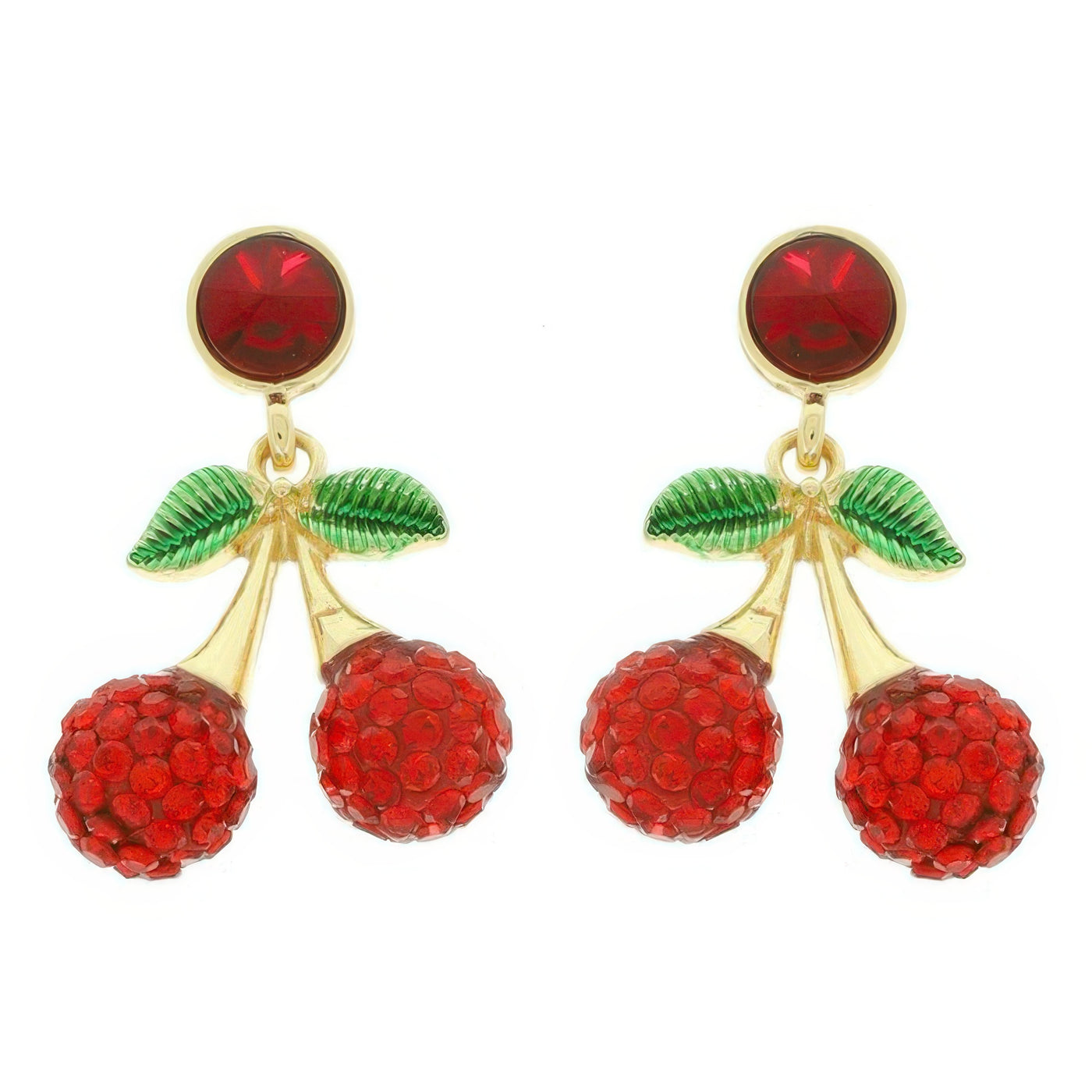 Product Description: Bright and whimsical, these jeweled cherry post earrings add a playful pop of color to your style. Featuring crystal embellishments on glossy red cherries, they strike a perfect balance of sparkle and fun. With a lightweight drop design, they’re easy to wear for parties, vacations, or seasonal outfits. A cheerful accessory that instantly elevates your look.