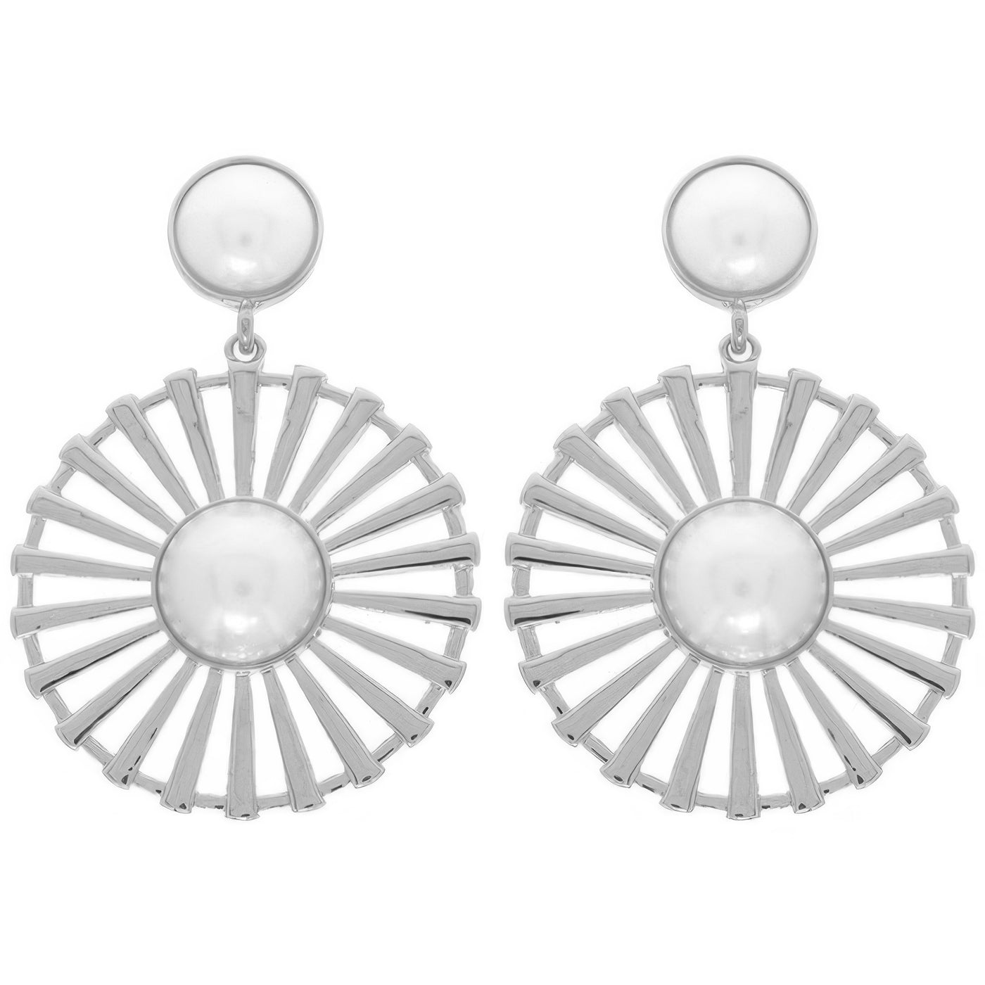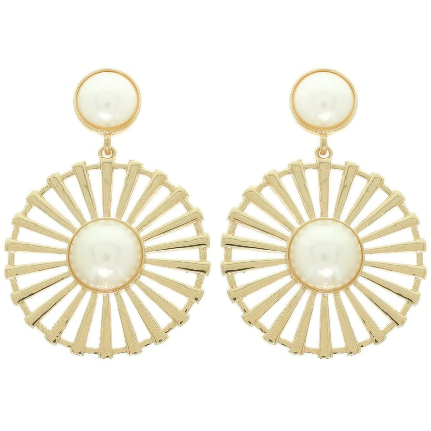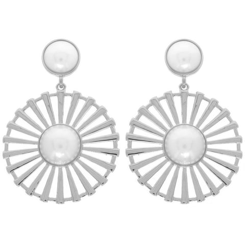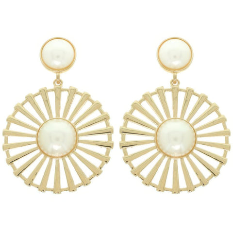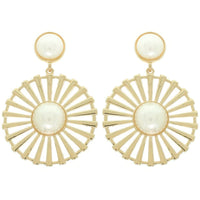 Product Description: Timeless and refined, these floral earrings feature a radial pattern with bezel-set pearls at the center. Crafted in gold-tone or silver-tone metal, they blend vintage inspiration with modern artistry. The floral motif with ornate detailing makes them perfect for weddings, galas, or everyday elegance. A versatile statement piece for year-round occasions.