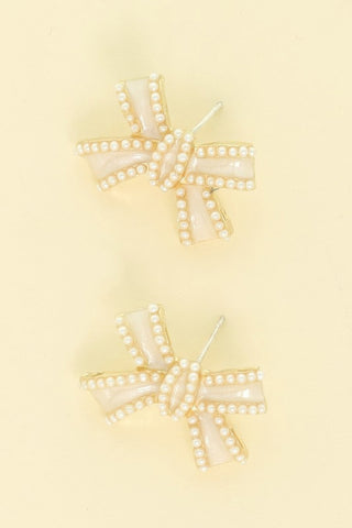Jeweled Short Tail Bow Ribbon Earrings Sale