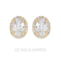 Gold Dipped Cz Oval Halo Stud Earrings Sale