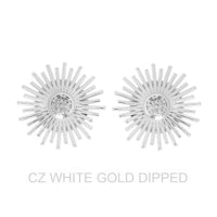 Product Description: Bright and radiant, these shining sun drop earrings bring warmth and sparkle to any style. Featuring a sunburst design with cubic zirconia accents, they capture light beautifully for a glowing finish. Gold dipped in a polished white and yellow plating, they balance playful charm with timeless elegance. Their medium size makes them versatile for both daytime wear and special evening events. A stylish way to add brilliance and positivity to your jewelry collection.