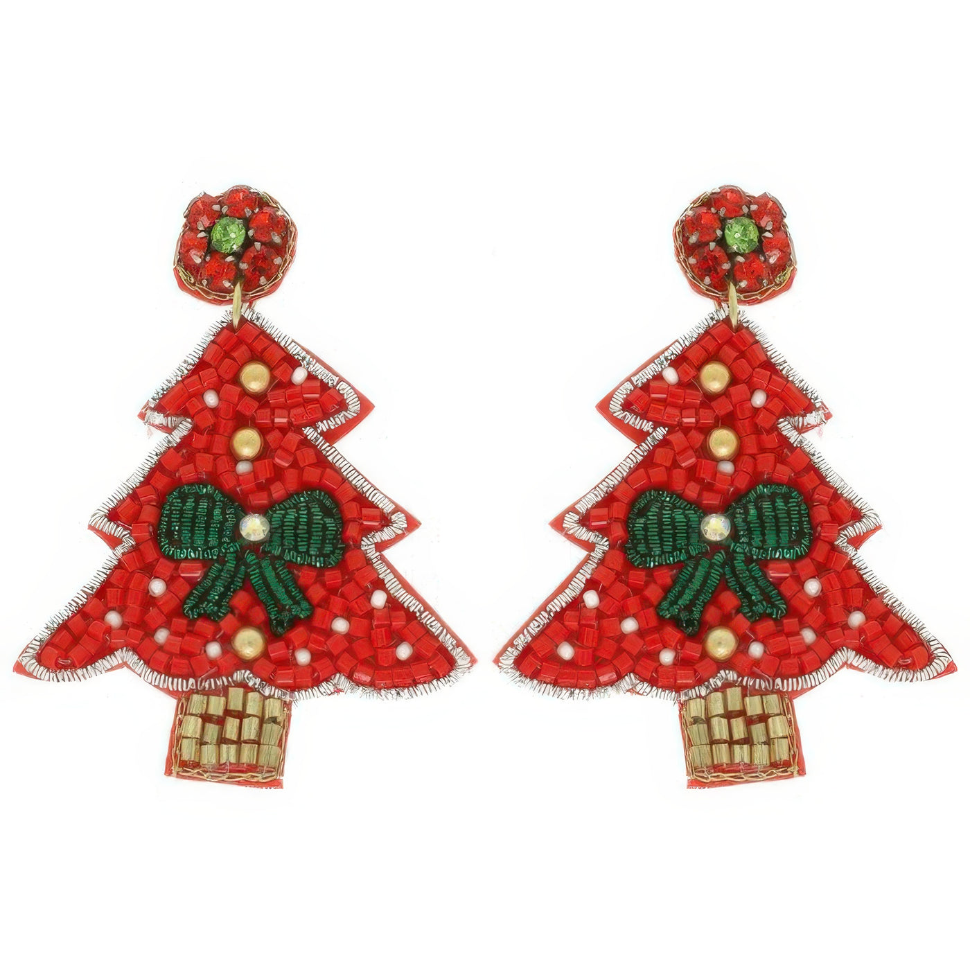 Product Description: Add a radiant pop of red to your holiday look with the Jeweled Red Christmas Tree Post Earrings. These dangle earrings feature vibrant seed beadwork and crystal embellishments in a festive tree silhouette. Their lightweight design makes them comfortable for all-day wear, while their cheerful sparkle brings the perfect finishing touch to your seasonal ensemble. A go-to gift for anyone who loves bold holiday accessories.