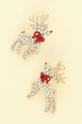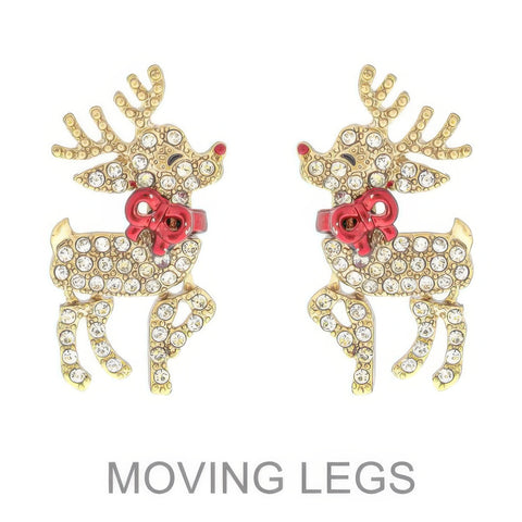 Product Description: Add whimsy to your holiday outfit with our Christmas Reindeer Earrings. Featuring a red nose, festive bow, and movable legs, these playful dangles are perfect for spreading seasonal cheer.